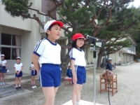 本校の運動会は、飯豊地区の皆様や保育園の子どもたちも参加するという点が大きな特徴です。町長様、町議会副議長様をはじめ、たくさんのご来賓の皆様にもおいでいただき、励ましの言葉をいただきました。まさに、地域の皆様に見守られている学校であると実感できました。