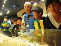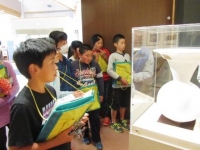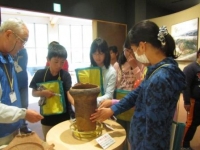 まず、展示室で大安場古墳についての説明をしていただきました。直接「縄文土器」に触れ、「ざらざらする」「これで肉を煮ていたんだ」など、感想を言っていました。