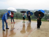 その後、小雨でしたが大安場古墳の1号墳に登り、古墳の大きさを体感することができました。