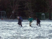 子どもたちは休み時間になると、校庭に飛び出し雪で思い切り遊んでいます。雪山作り、雪だるま作り、雪合戦、雪の滑り台・・・・などなどいろんな遊びをしています。