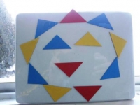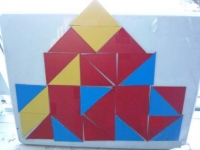 * 写真は、1年生が色板で作った形です。さて、何を表現したのでしょうか?