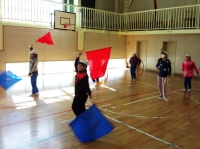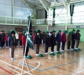 次に、団長から副団長へ緑の少年団団旗の引き継ぎと帽子の引き継ぎがありました。