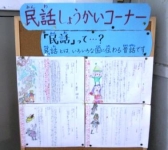 図書室前に、「民話紹介コーナー」を発見しました。国語の時間に子ども達が読んだ民話の紹介文も掲示されています。