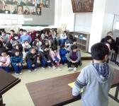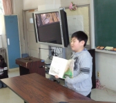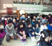 絵本を見せながら、全て英語での読み聞かせでしたが、集まった全校児童は、流れるような英語と情感たっぷりな表現力に魅了され、物語の世界に引き込まれていました。発表が終わると大きな拍手が起こり、目を輝かせて聴いていた1・2年生からは、「とっても、じょうずでした。」「おもしろかったです。」という、感想も発表されました。