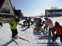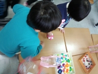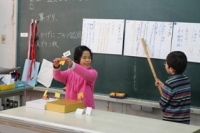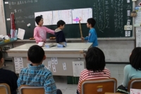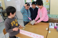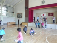 団体種目では、赤・青・黄・白の4チームに分かれて長縄に挑戦しました。高学年の児童が、1年生の背中を押して縄に入れるようにしてあげたり、縄の回転を遅くしてあげたりという優しい姿が見られました。