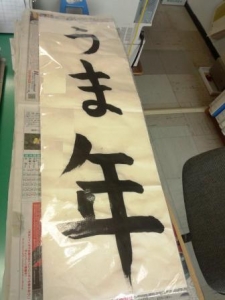 冬休みにもお家の方と練習では大変お世話になりました。お家で書いた作品と学校で書いた作品の中から一番よいものを書きぞめ展に出品いたします。県の審査会を受け、2月中旬には学校に結果と賞状が届く予定です。