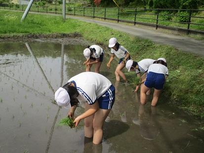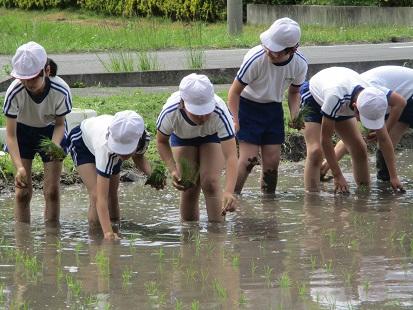 5・6年生は、泥の感触を味わいながら、田植えにチャレンジしました。