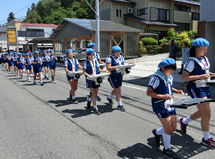 全校児童37名が、暑さに負けず、最後まで一生懸命に演奏・パレードしました。