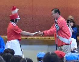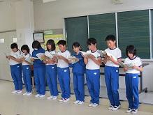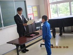 到着後、代表児童が、小野町長様から記念品をいただきました。