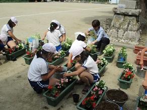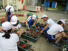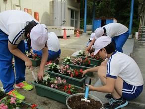 6月5日、5・6年生が、早速、花苗を植える活動にチャレンジしました。