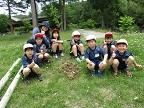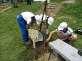 学年ごとに、友達と協力し合いながら植樹し、学年ごとに自作の看板を立てました。