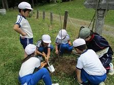 全校児童が、小野町にある「ふれあいの森」を訪問し、桜の記念植樹にチャレンジしました。
