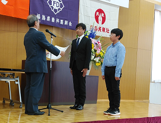 第63回県学校歯科保健優良表彰の表彰式に保健委員会委員長と出席しました。