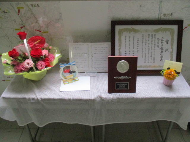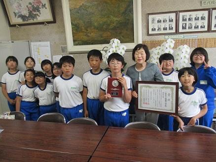 受賞をみんなで喜び、5・6年生と一緒に校長室で記念撮影をしました。