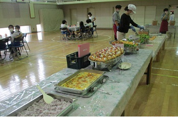 会場設営を5・6年生が行い、給食センターの皆さんが、準備してくださいました。