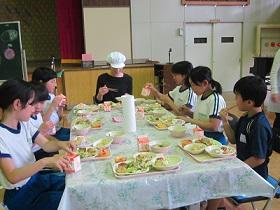 2019年6月15日 18時20分栄養教諭の松本先生はじめ3名の給食センターの皆さんに来校していただき、