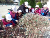全校生で、学校の花壇で育てていた「アサガオ」「ふうせんかずら」「マリーゴールド」の種取りを行いました。