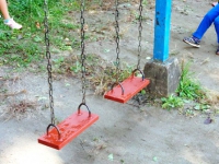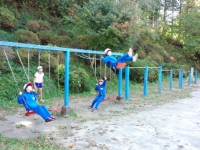 先日、飯豊小学校のブランコの座席の部分が老朽化していたため、新しい木に付け替えて修繕いたしました。新しくなったブランコで、楽しく遊んでいます。