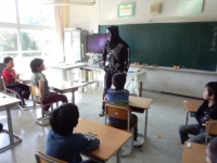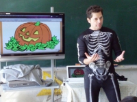 本校に英語を教えに来ていただいているアレサンドロ先生は、スケルトンのハロウィン用の衣装を着て登場しました!子どもたちをあちらこちらで驚かせていました。