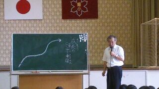 校長先生が黒板に板書し、努力し続けることの大切さについてお話してくださいました。
