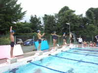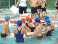 最後は、全員リレーです。紅白それぞれ2チームに分かれてリレーを行いました。それぞれが自分のチームの勝利向かって懸命に泳ぎました。結果は紅白同点でした。