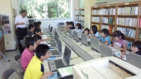 2校時は図書室で、4年生が理科の学習でインターネットのサイトを使って調べ学習を行っていました。一人ひとりが自分の課題を調べようと熱心に取り組んでいました。