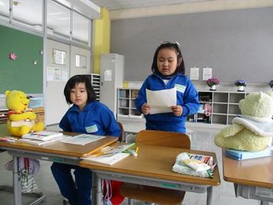 友達の前で音読にチャレンジする1年生!
