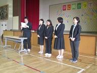 最初に6年生の代表児童に、交通安全推進委員の委嘱状を交付して