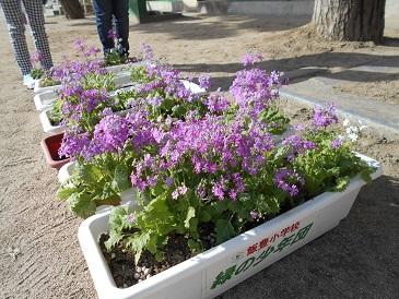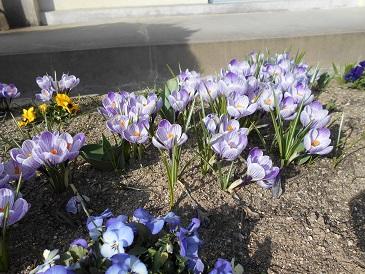 体育館のまわりの福寿草の花は100をこえ、花壇のクロッカスは満開です。卒業式の通路を飾るさくら草も、ピンクの花をたくさん咲かせました。