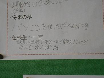 小学校での思い出や将来の夢などが、ひとりずつ書いてあります。
