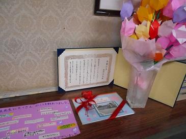 校長室には「卒業証書」と「記念品」が大切に飾られています。