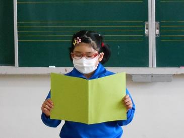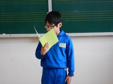 その後、5年生の代表児童から、4名の先生方への感謝の言葉が伝えられました。