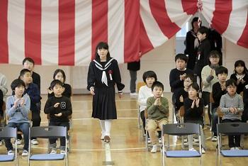 卒業式が終わると校長先生は「泣きたいくらいうれしいです。でも、男が泣いてもいいのは3回だけ。だから、泣くのはがまんします。みなさん、どうもありがとう」と、お話ししました。