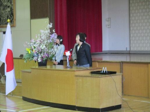 着任式では、校長をはじめとする教職員5名が、あいさつをしました。