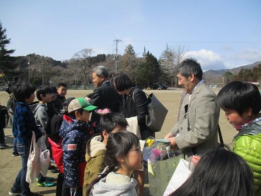 見送りでは、子ども達からお世話になった先生方へお花やお手紙などのプレゼントが渡されていました。