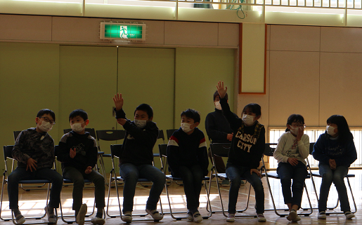このヒントでも次々に手があがり、答えてしまう在校生。本当に全校児童の仲がよい小学校だという