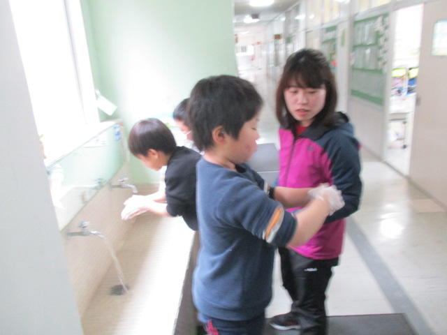 先生に手の洗い方を教えていただき、再チャレンジです。