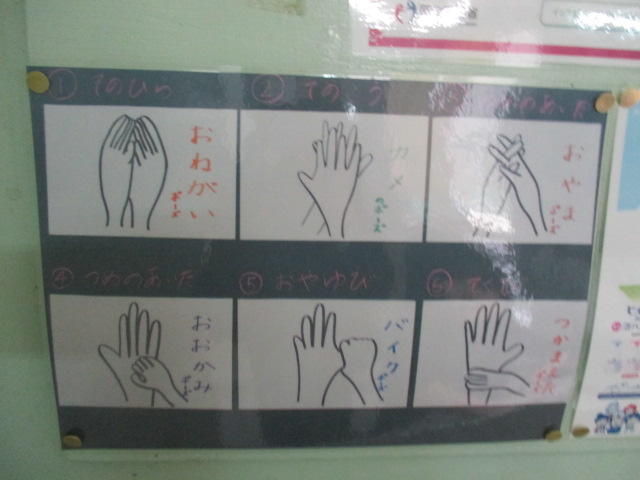 さて、1年生のみなさん、そして全校児童のみなさん、水道に掲示(けいじ)してあるこの絵を思い出しながら、手洗いをしっかり行い、体の健康を守ることにチャレンジしましょう。