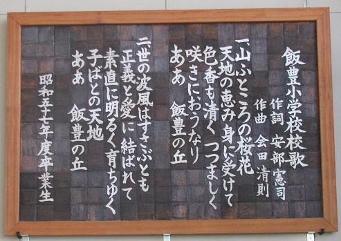 飯豊小学校の校歌は、1975年に編集された「創立100周年記念誌」によりますと、昭和24~26年頃に、当時飯豊小学校長の安部憲司先生が作詞をし、それに作曲をしたのが当時飯豊中学校校長の会田清則先生である、とのことです。