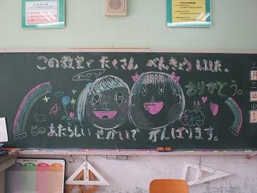でも、2年生教室の黒板の前に立つと、元気で明るい飯豊っ子の笑顔が浮かび、元気が出てきます。