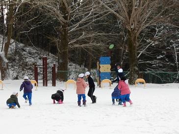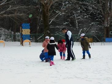 保健室の外を見ると、校庭で元気に冬を味わう1・2年生の姿が・・・