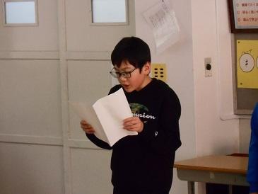 6年生代表は、「なわとびの二重跳びが続けられるようにする」「寒いけど歩いて登校したい」という2つの目標でした。