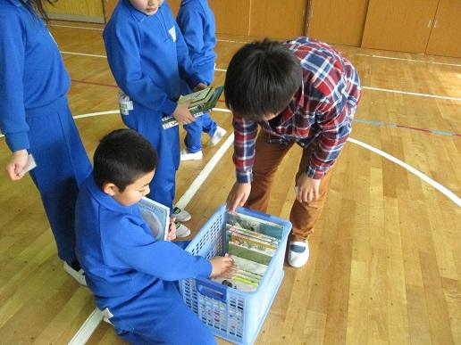 16日(水)、文化の館の職員さんに来ていただき、5回目の移動図書館(5回目)を行いました。