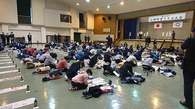 20日(日)、小野町多目的研修集会施設大ホールで、町内の小中学生が集まり、書きぞめ大会が行われました。