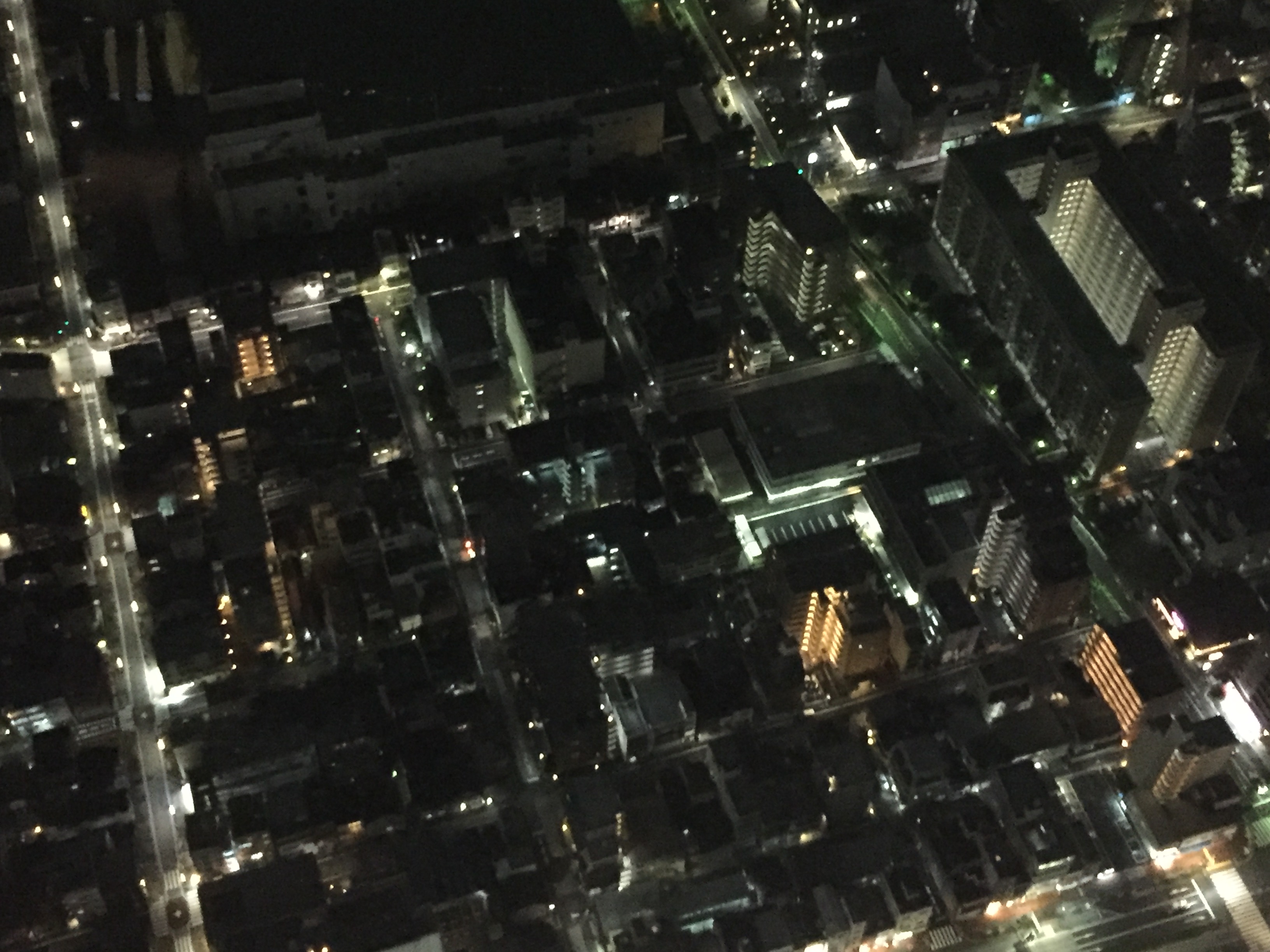 雨雲も消えて、眼下には一面にきらめく東京の夜景が広がっています。