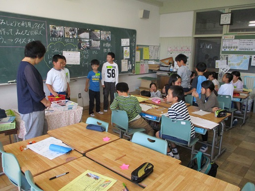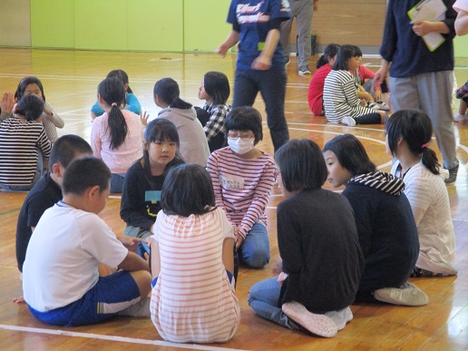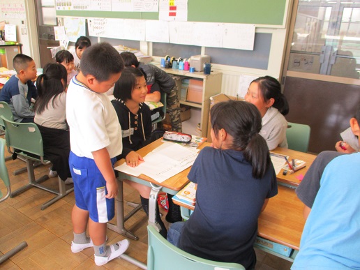 いよいよ授業です。だいじょうぶ、ちゃんと他の小学校の子とも話し合いができました。
