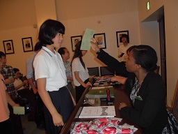 記念撮影をして、まずは入国審査。英語をたくさん話す1日の始まりです。