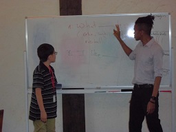 それぞれのグループに外国人の先生がついて、英語を使ったトレーニングが進んでいきました。