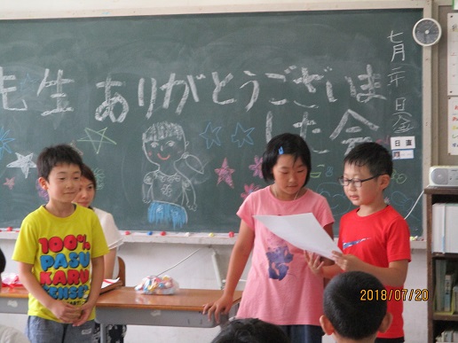 5時間目には3・4年生が先生とのお別れ会を行いました。