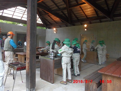 夕食も、みんなで協力して手作り。メニューはもちろん、カレーライスです。